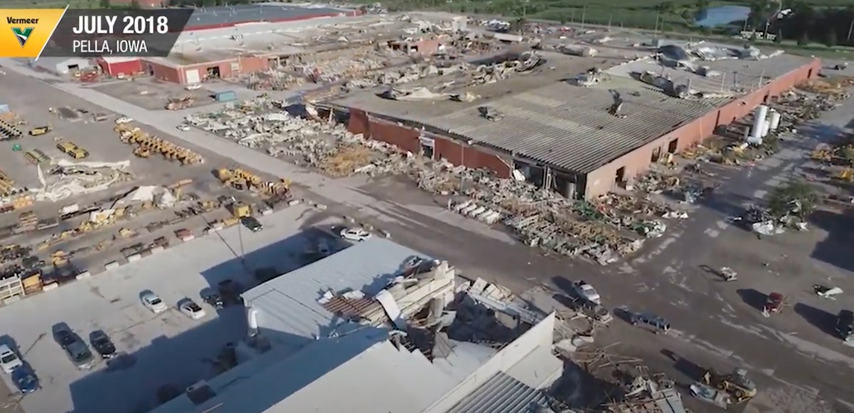 The 2018 EF3 tornado destroyed manufacturing plants at Vermeer’s Pella, Iowa, campus. In 2019, Vermeer hired Roger Paul Bradford to oversee the company’s construction projects, including the construction of an Eco-Center to replace the one destroyed in the tornado.