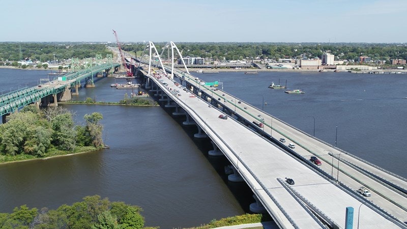The new bridge features two stunning basket-handle arches, and it will be twice as wide, with four lanes in each direction, as the old bridge, which will be demolished.
